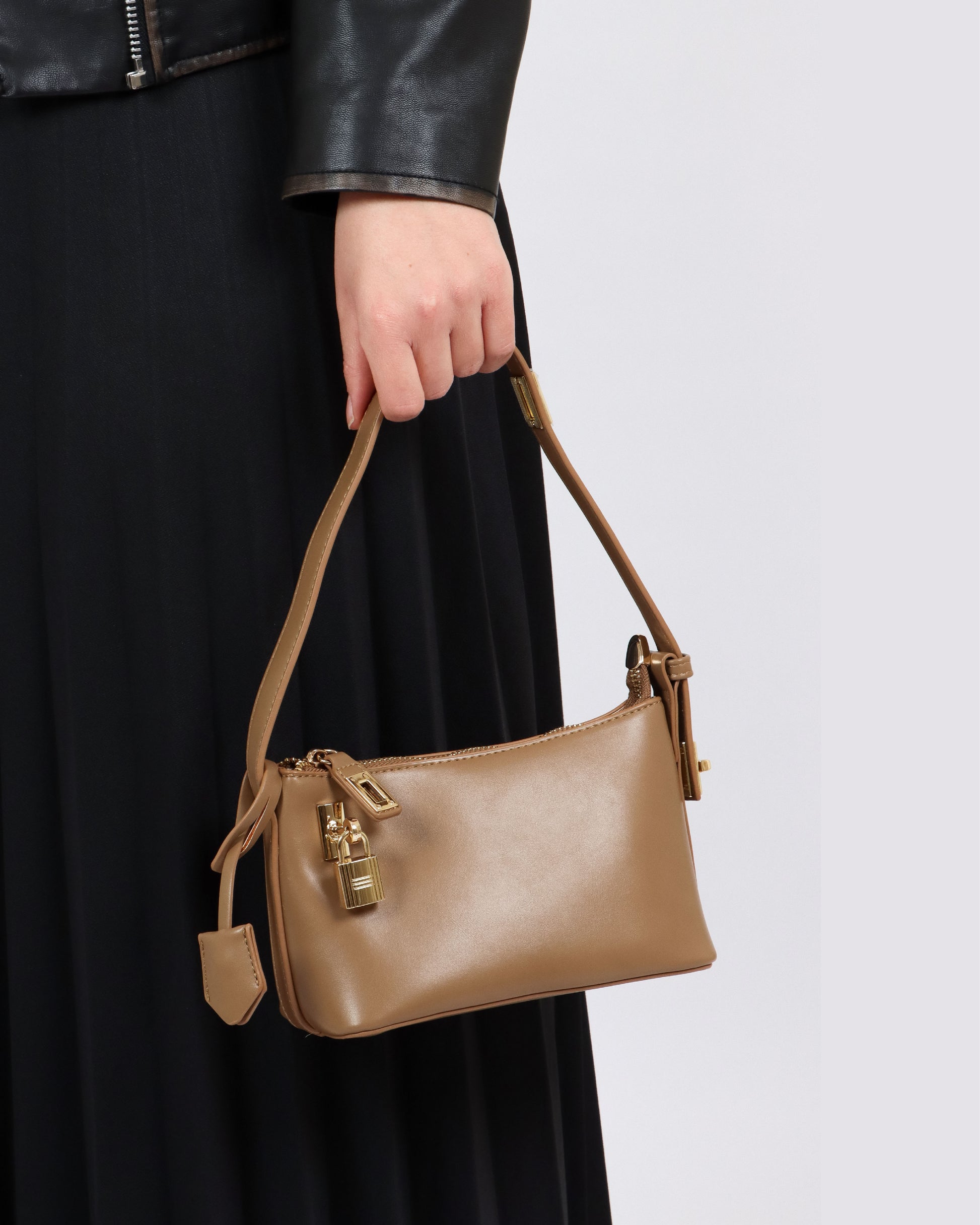 This compact small shoulder bag is made from premium PU leather, offering a sleek and stylish look. The soft, smooth texture adds sophistication, while the unique lock feature ensures your belongings stay secure. Perfect for those who need a chic, secure, and practical accessory for everyday use or special occasions.