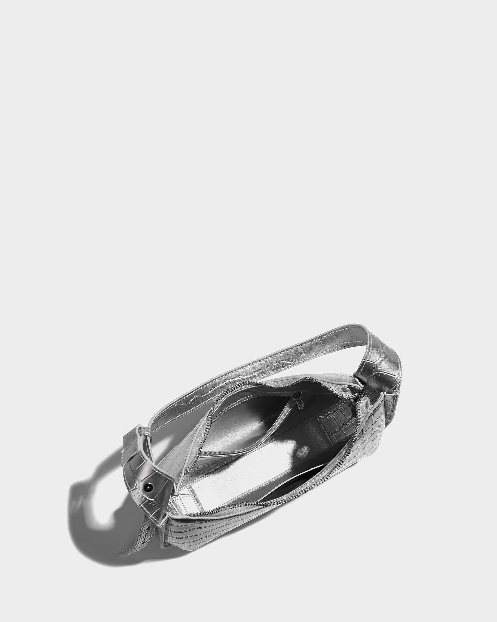 Turn heads with Monaco Shoulder Bag — a bold yet elegant piece that brings instant shine to any look. Its sleek croc-embossed texture and compact silhouette make it the perfect finishing touch, whether you're heading to brunch or a night out.